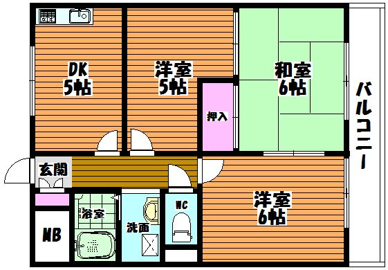 DK5帖、和室6帖、洋室5帖、洋室5帖